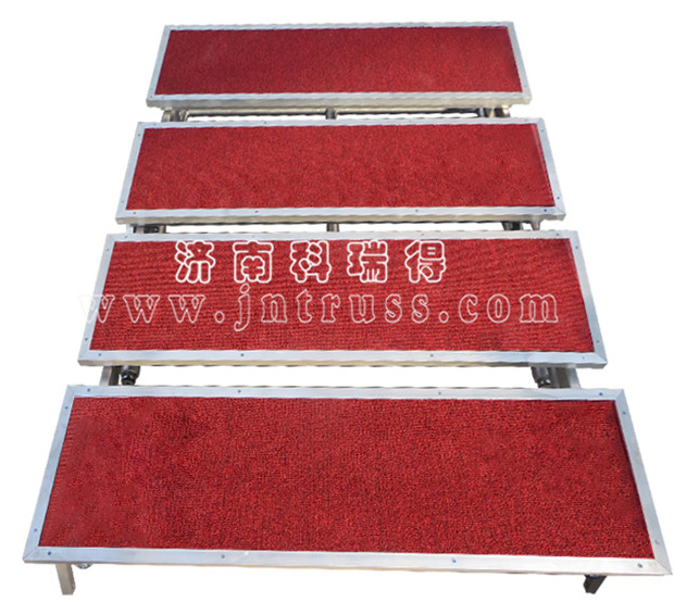 臺面18mm厚建筑模板承重好,表面鋪有5MM紅色地毯保證整體大方美觀。
